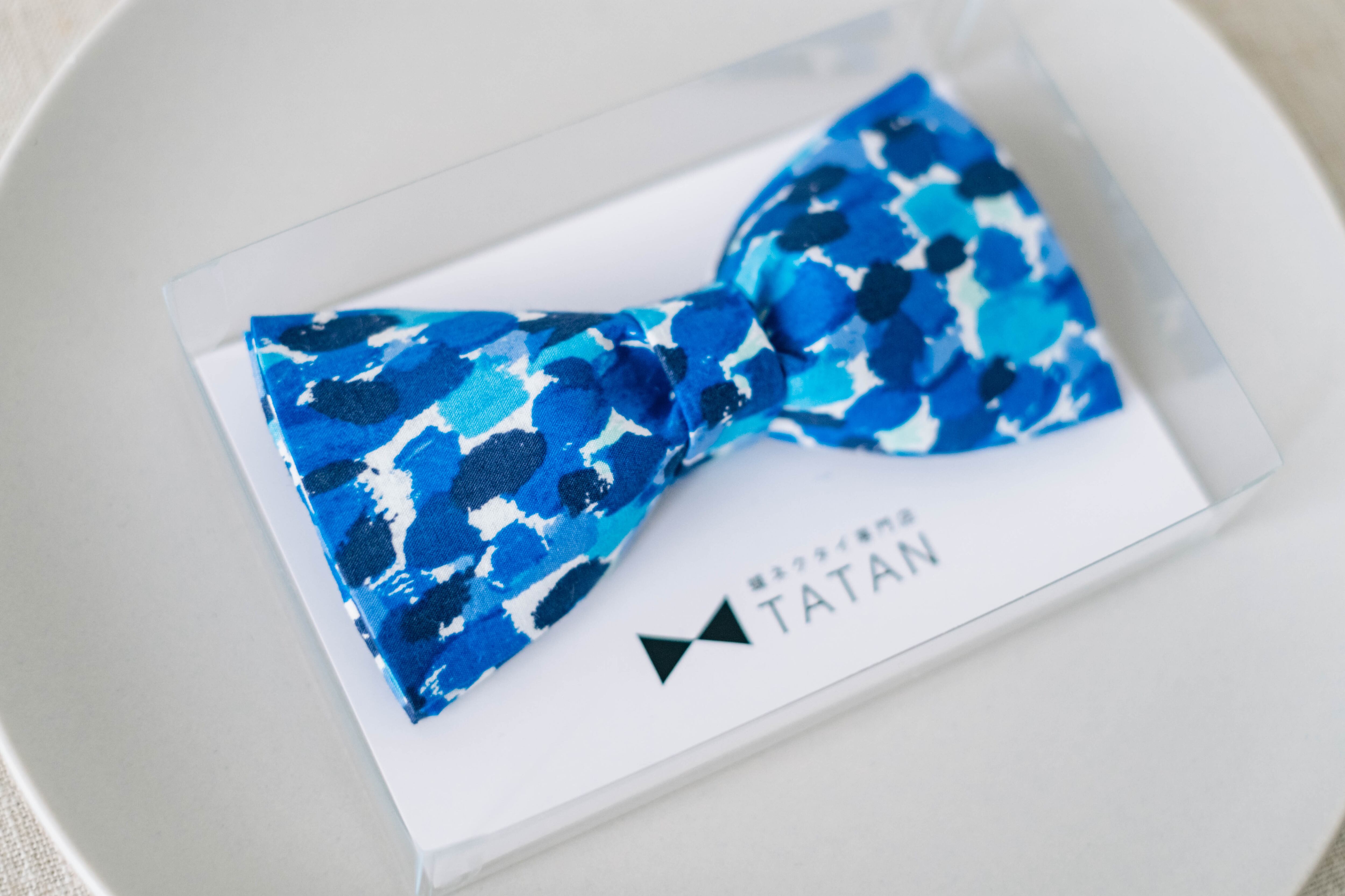 水彩のようなタッチのマーブル模様が特徴的な蝶ネクタイです。